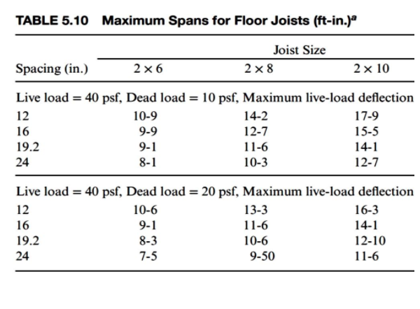 Solved Table 5 10 Maximum Spans For Floor Joists Ft In A Chegg Com